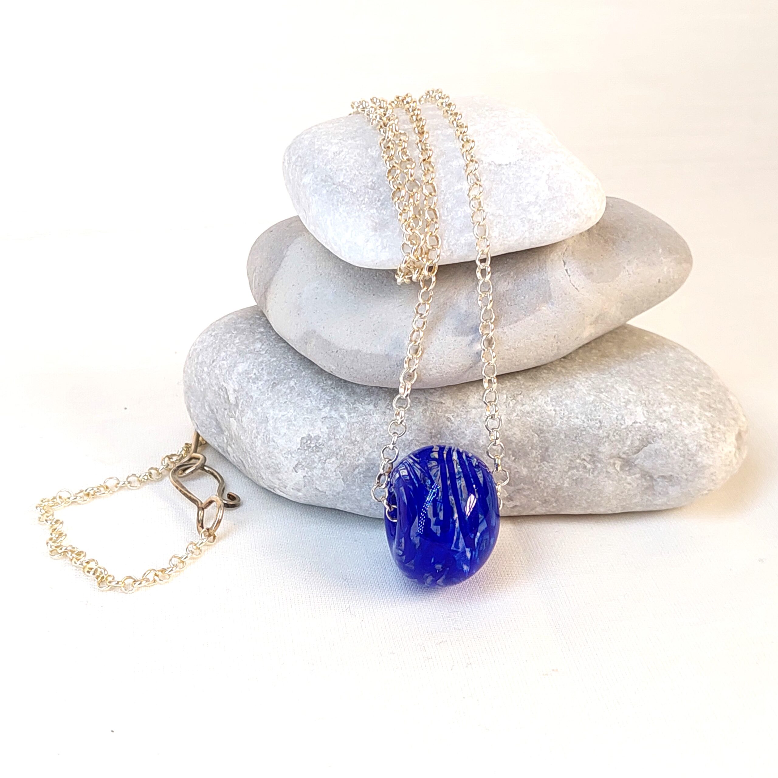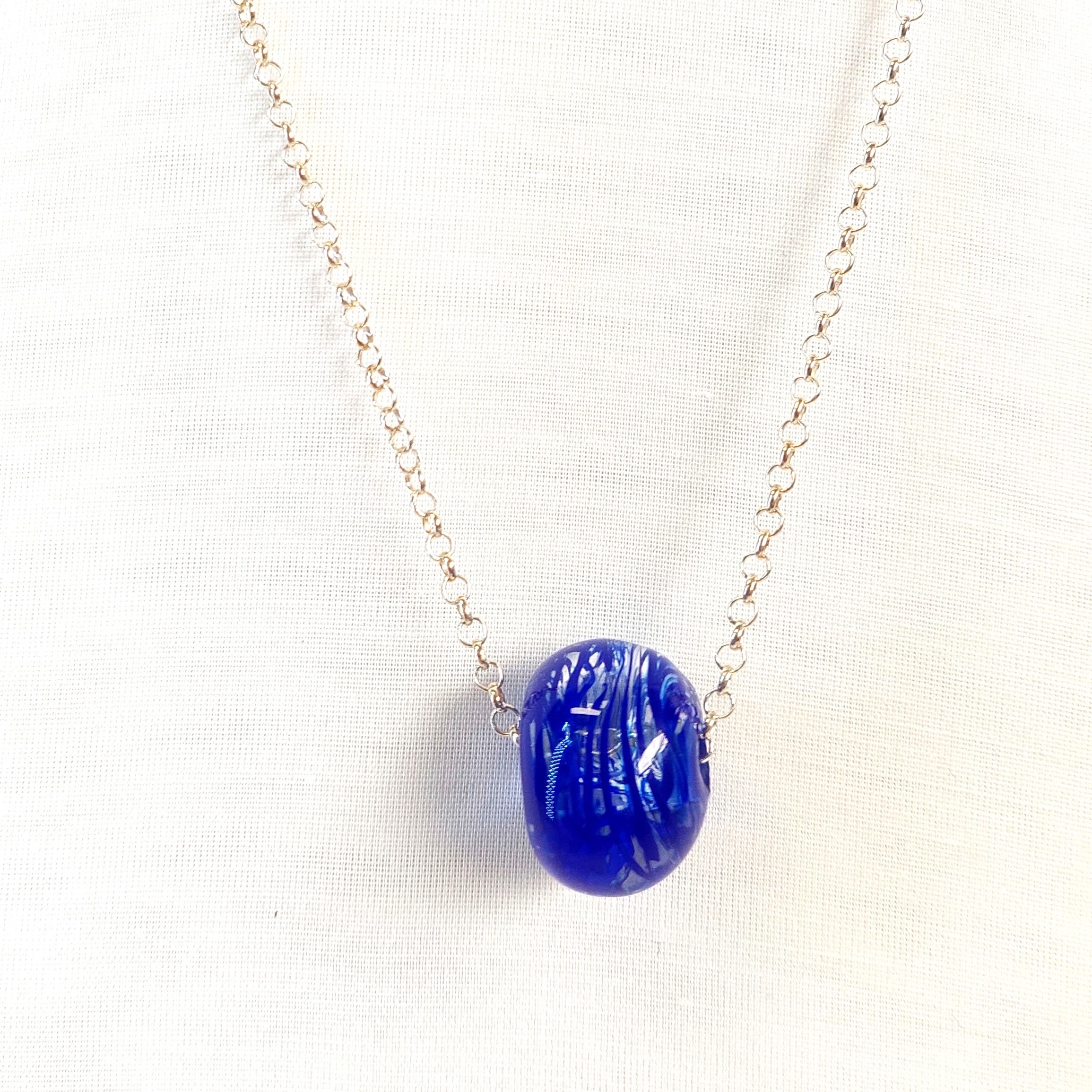 הכדור עבודת יד במבער, מושחל על שרשרת רולו, מכסף סטרלינג.