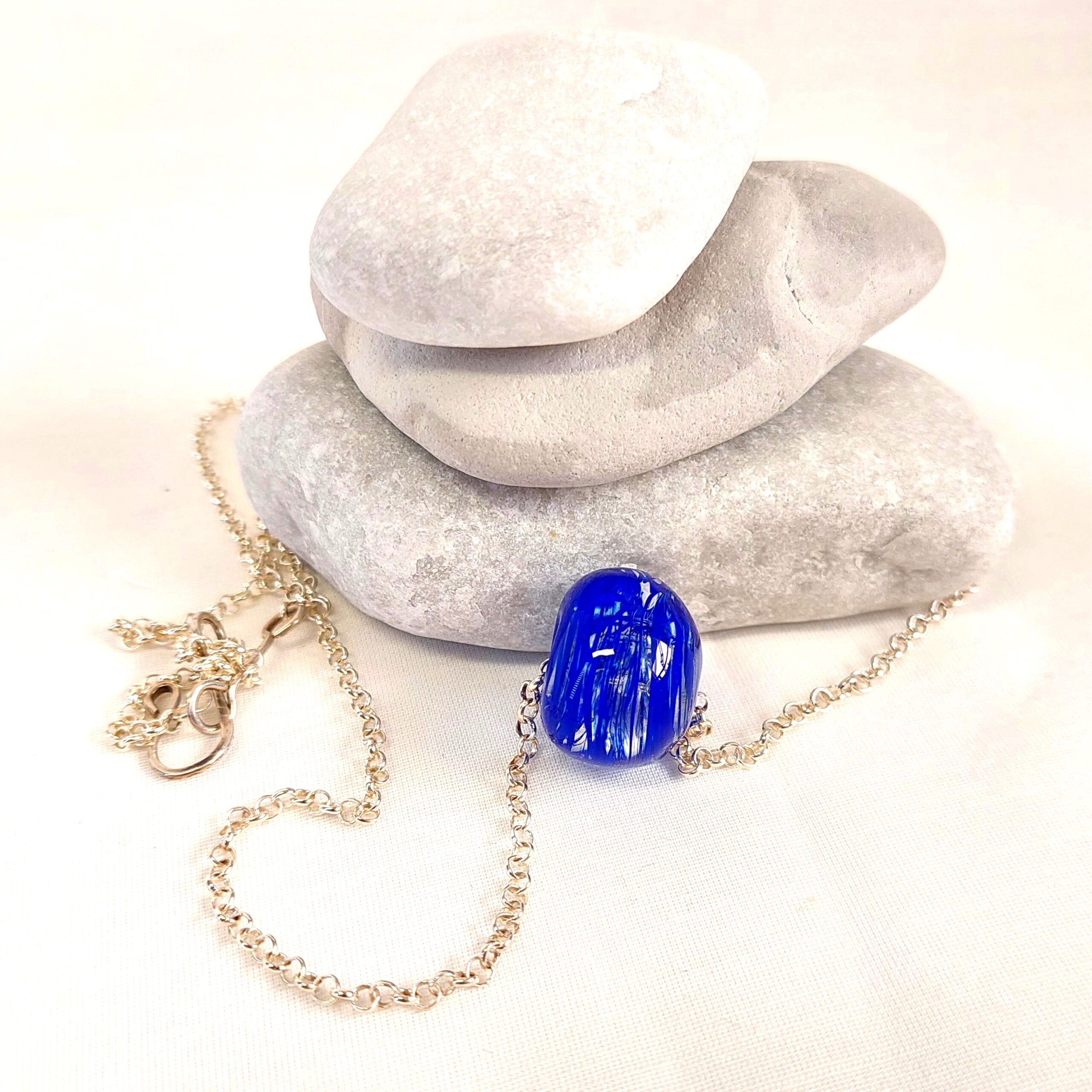 תליון כדור זכוכית כחול על שרשרת כסף